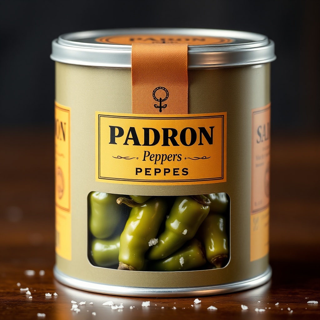 Auténticos Pimientos de Padrón (Herbón) IGP en conserva gourmet. Preparados en aceite de oliva y sal de mar. Listos para calentar y servir. Lata 250g.